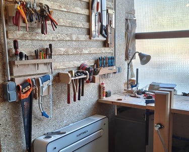 Toutes mes créations sont réalisées à la main dans mon atelier, ou tout est pensé pour avoir un environnement de travail chaleureux et exigeant.